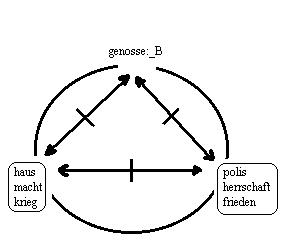 (01)argumente: //==>2.42.01/(d), 2.52.02/(d); 2.62.01/(o). // (e)<==//die reihung unterliegt weder einer negativen noch einer positiven bewertung. Es ist zwar üblich, die termini: macht und krieg, negativ zu konnotieren, die termini: herrschaft und frieden, positiv, über kreuz aber sind diese konnotierungen mit den termini: polis und haus, inplausibel. (f)<==//(g)die graphik: 207d, ist eine zusammenführende erweiterung der graphiken: "203b, 205d, 206d(01).(st/2.42.01/(d))<==//