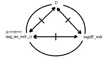 wiederholung des gedankens in einer graphik. Die relation: A<==>B, hat in der funktion der relation_1 die form: A<==|==>k'<==|==>B,* deren ausgeschlossenes drittes moment das ding der welt: k, ist, das A und B in differenten relationen als relation_2 vefügbar haben.