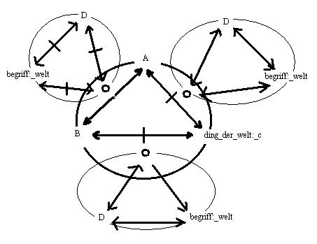 wiederholung des gedankens in einer graphik. Die kommunikation des A und B über das ding der welt: k,*.