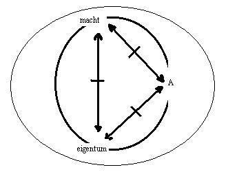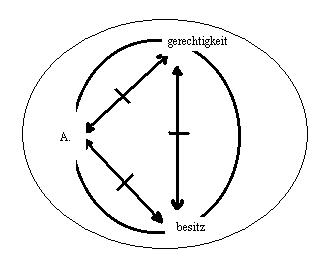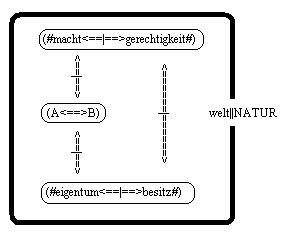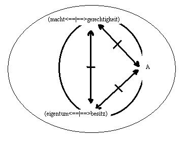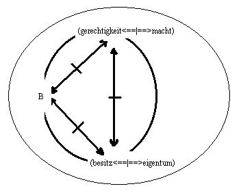 die konstituierenden momente sind: (A<==>B), (#macht<==|==>gerechtigkeit#)(+1) und (#eigentum<==|==>besitz#)(+2);