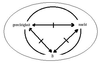 die konstituierenden momente: "A, B und (#macht<==|==>gerechtigkeit#);