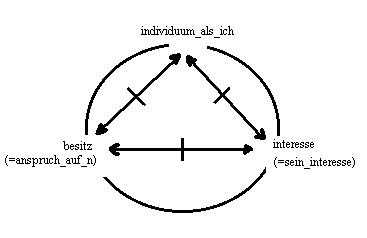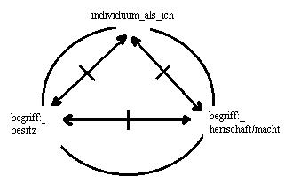das problem in einer graphik reformuliert. Im trialektischen schema sind es die momente: "das individuum als ich, der begriff: besitz, und die begriffe: herrschaft und macht",(+1).