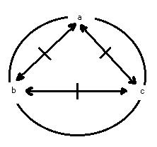 (+1) lies: klein a relationiert abhängig klein b, klein b relationiert abhängig klein c, klein c relationiert abhängig klein a.