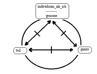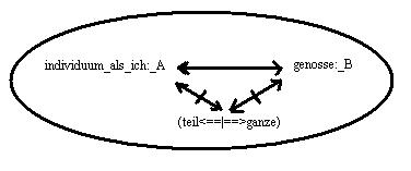 Die momente: "das individuum als ich:_A, der genosse:_B, und die relation: teil<==|==>ganze".
