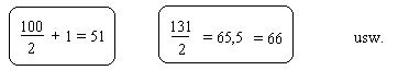 so die zahlen: (50 + 1 von 100), (65 +1 von 130), (315 +1 von 630), usw.(01).