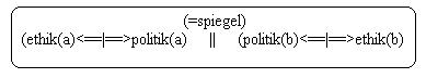 2.rel.: A<==|==>((ethik(a)<==|==>politik(a)<==|==>(politik(b)<==|==>ethik(b))